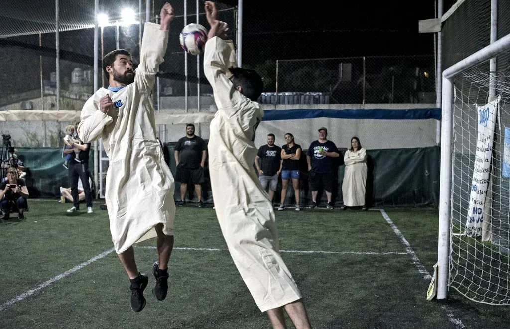 La recreación del gol de la mano de Dios ante Inglaterra por los fieles de la Iglesia Maradoniana