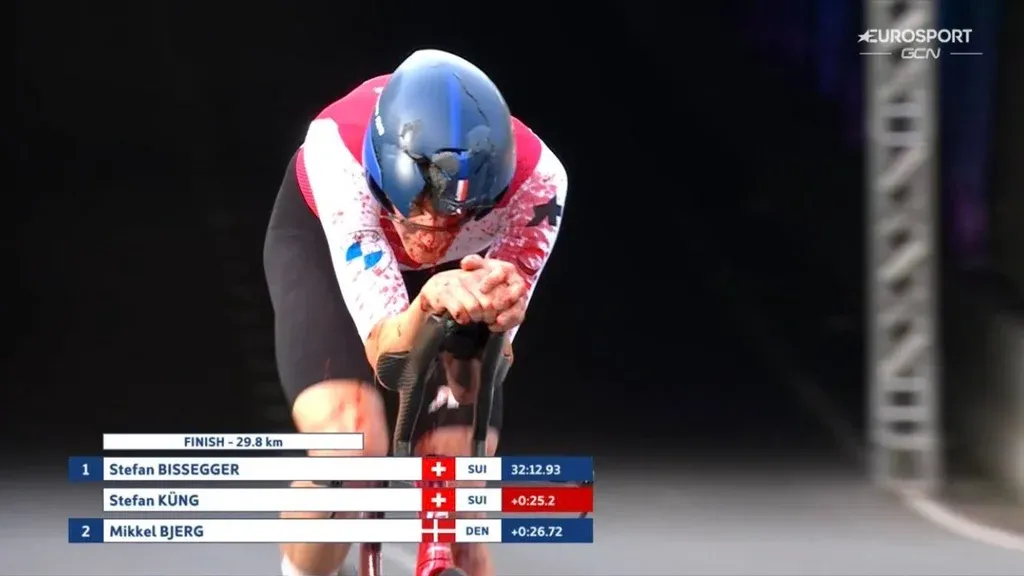 El ciclista suizo Stefan Küng protagonizó una aparatosa caída este miércoles en el Campeonato de Europa de contrarreloj que se realiza en Países Bajos y la imagen de cómo quedó tras el impacto se viralizó en las redes.