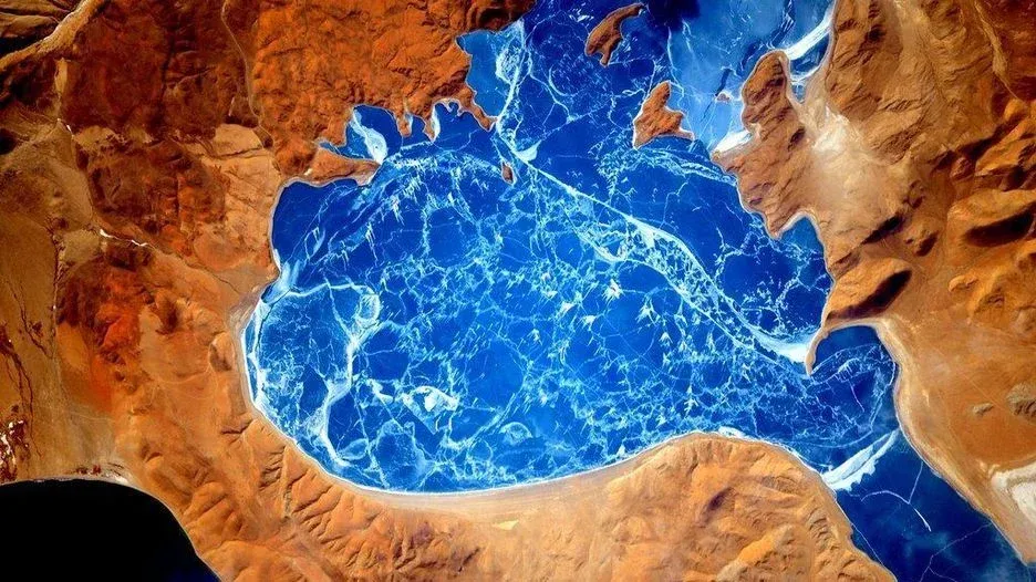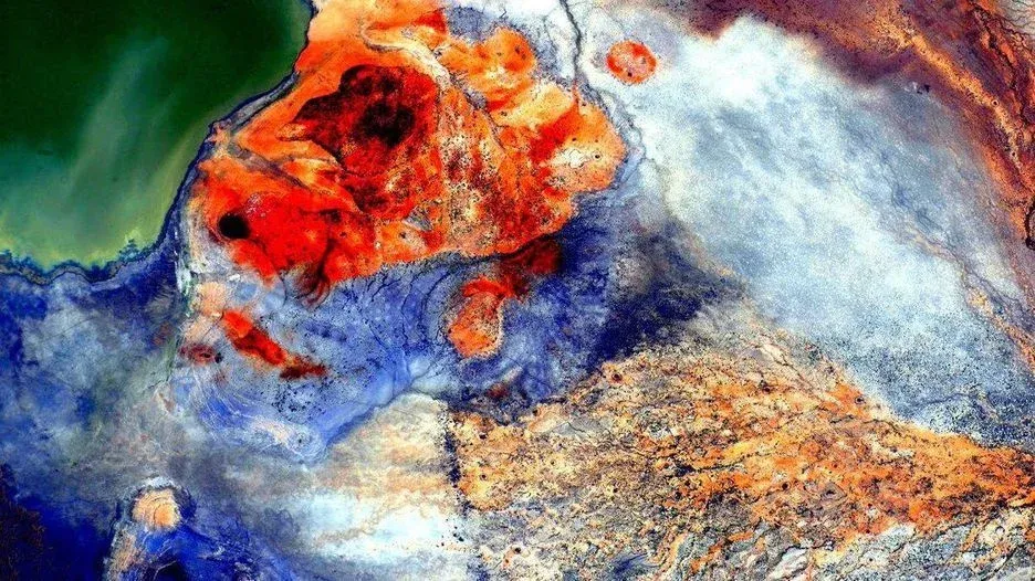 Kelly tuiteó esta imagen desde la ISS con el mensaje: "Pedazos de esmeralda, ámbar y azul purpúreo entretejidos sobre Oriente Medio como una alfombra de colores"