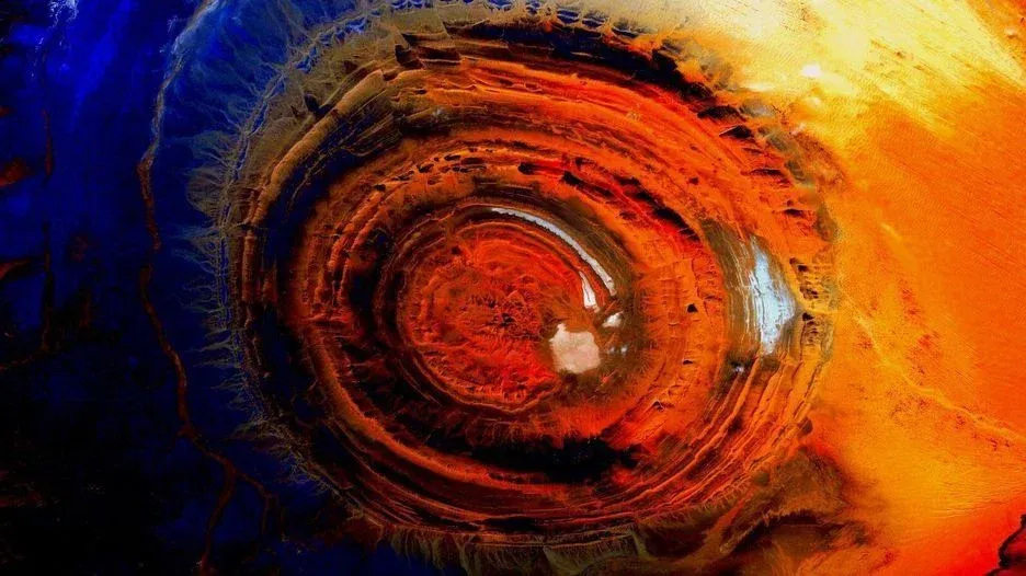 Estructura de Richat: también conocida como el ojo de África, la estructura de Richat es una cúpula geológica en el límite oeste del Sáhara, erosionada durante millones de años para mostrar las capas de rocas sedimentarias.