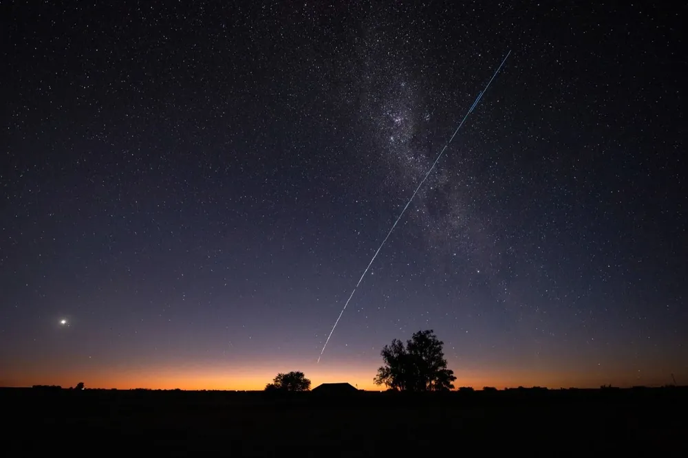 La fotógrafa Mariana Suárez registró el rastro del grupo de satélites Starlink, el proyecto de la empresa de Elon Musk para llevar internet a lugares remotos del mundo.