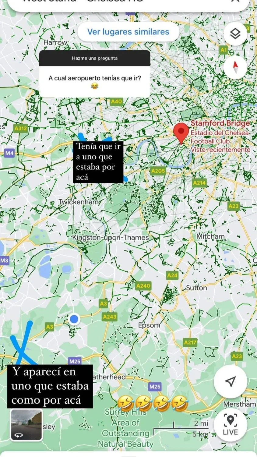 Luego, en sucesivas publicaciones, algunas con videos, otras con fotografías y respondiendo preguntas de sus seguidores, Bonino contó que había llegado a Londres pero que se equivocó de aeropuerto.