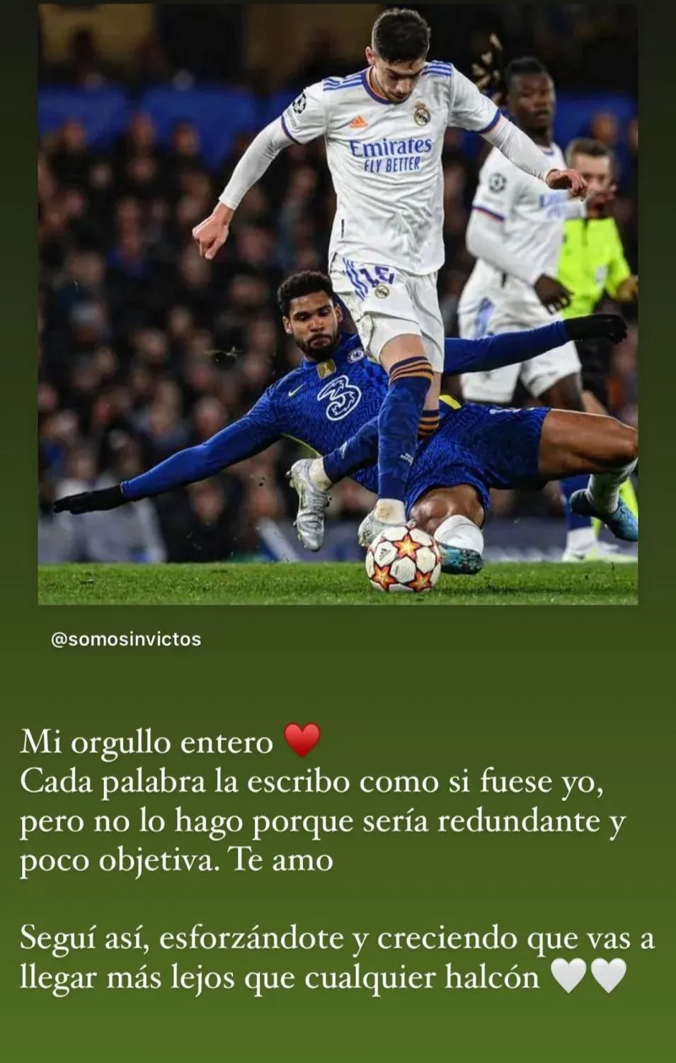 Al final del encuentro se subió a un micro y partió hacia el aeropuerto, con frío pero con la felicidad de haber visto un soberbio partido de su esposo, y por eso le dedicó un mensaje muy personal.