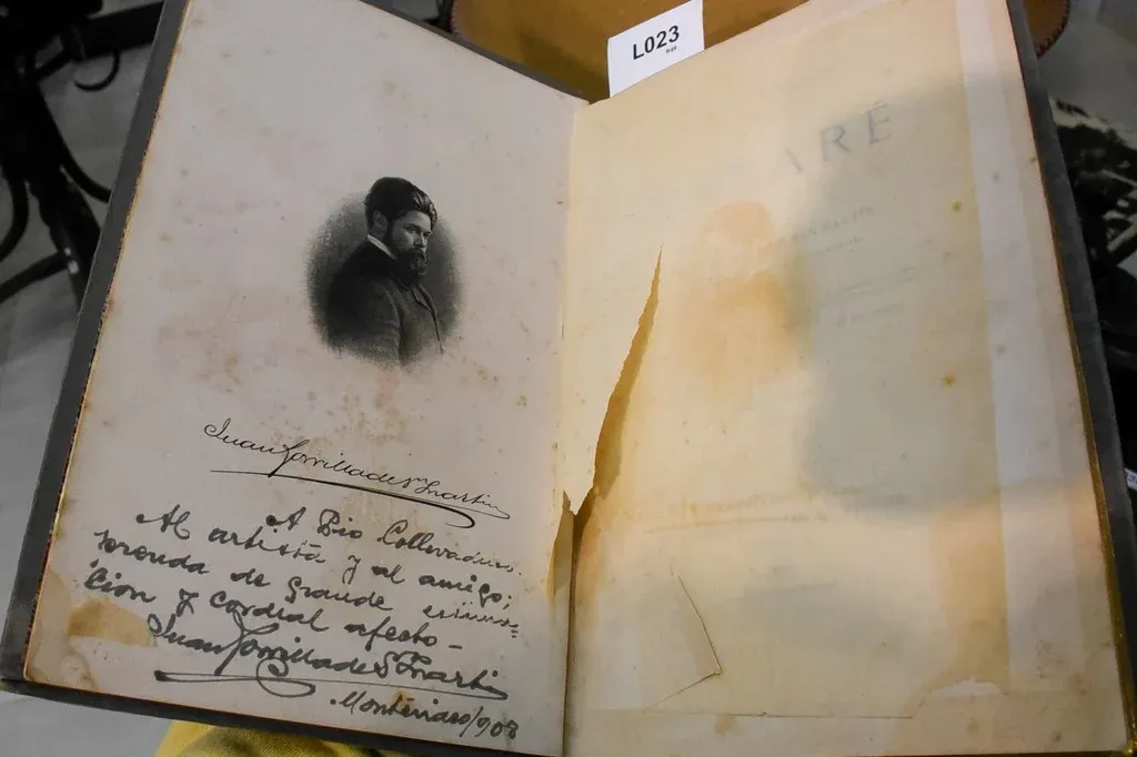 Sebastián Zorrilla será el encargado de bajar el martillo para los 160 lotes que se subastarán el 4 de mayo en el Hotel Costanero. Es, además, el sobrino nieto de China. “Todos descendemos del poeta”, dice el rematador mientras levanta de la mesa una temprana edición de Tabaré, la ilustre epopeya de su bisabuelo que perteneció a China Zorrilla y de la que sólo se imprimieron nueve libros más. Dedicada además por Juan Zorrilla de San Martín para el escritor Pio Collivadino, es uno de los 10 ejemplares que se publicaron al año siguiente de la primera edición.
