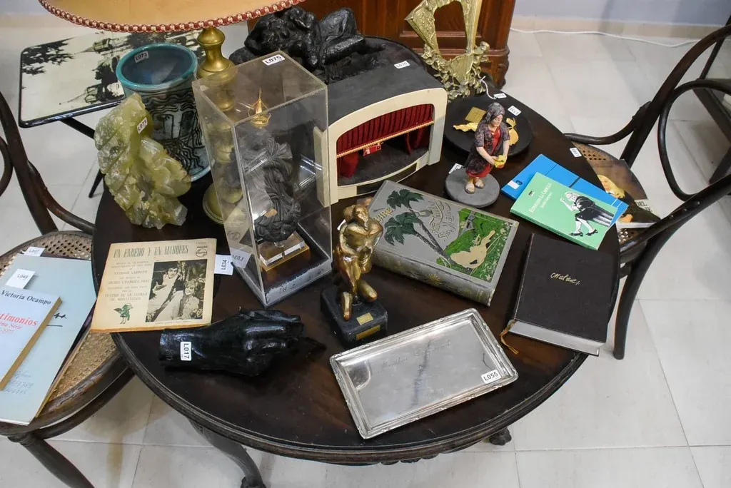 Además cuelgan en las paredes dos cuadros pintados por Rafael Barradas que representan las figuras de Juan Zorrilla de San Martín y José Luis Zorrilla de San Martín, junto a un cuadro de Ignacio Iturria, Hugo Sartore, Miguel Herrera Zorrilla, Gustavo Vázquez o Edgardo Ribeiro Nario. Pero una de las piezas que llama la atención entre los óleos y las esculturas es un papel amarillento en el que se lee claramente la firma ilustrada del poeta y dramaturgo español Federico García Lorca, rubricada durante su estadía en Montevideo en 1934. Según explica González, el escritor se lo regaló en aquella ocasión a la actriz Margarita Xirgu y ella se la obsequió luego a China.