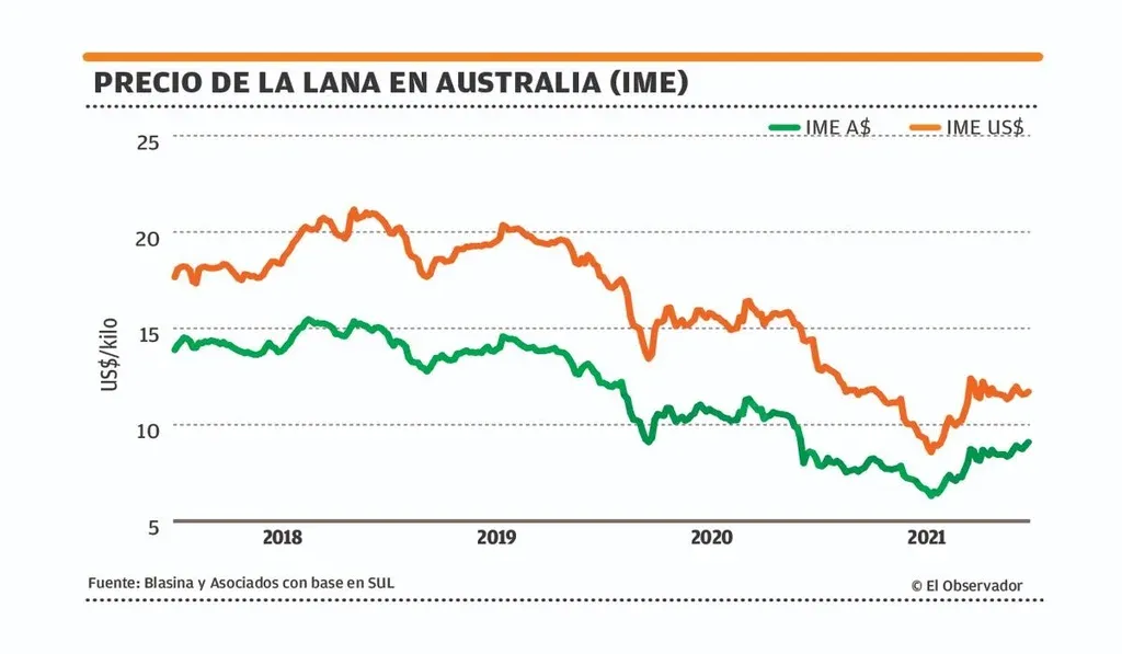 El mercado lanero inicia la segunda mitad de la zafra 2020/21 con buenas noticias. Luego de cuatro semanas de receso, el precio de la lana en Australia superó los US$ 9 por kilo base limpia, referencia que no se cruzaba en el mercado desde mediados de marzo de 2020, cuando el covid-19 llegó a Uruguay.
