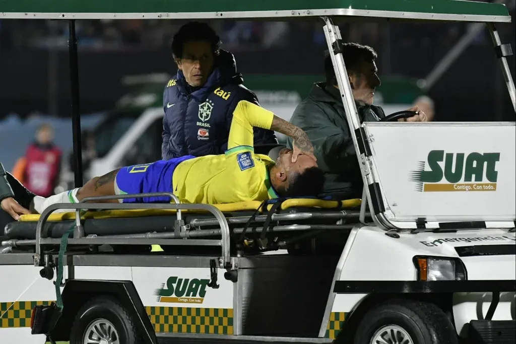 Leonardo Carreño Neymar se retira en camilla Neymar sufrió una lesión en la pierna izquierda que es evaluada por la sanidad de la selección, que analiza trasladarlo a un sanatorio privado para realizar estudios y conocer el grado de la lesión que sufrió.