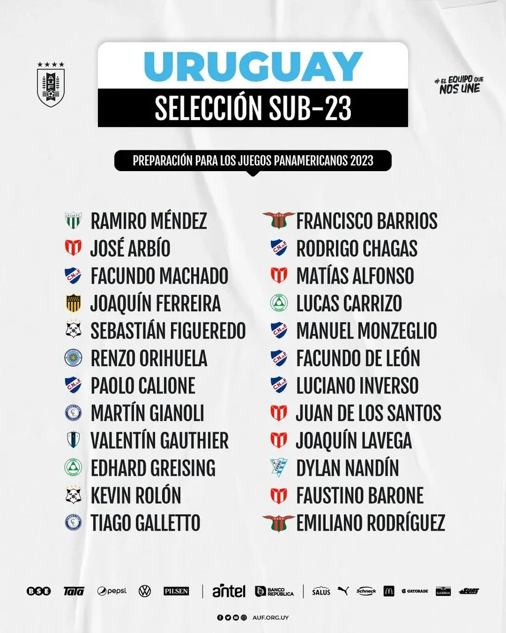 La selección uruguaya sub 23 dio a conocer la lista de convocados para la segunda semana de entrenamientos de cara a los próximos Juegos Panamericanos de Santiago de Chile.