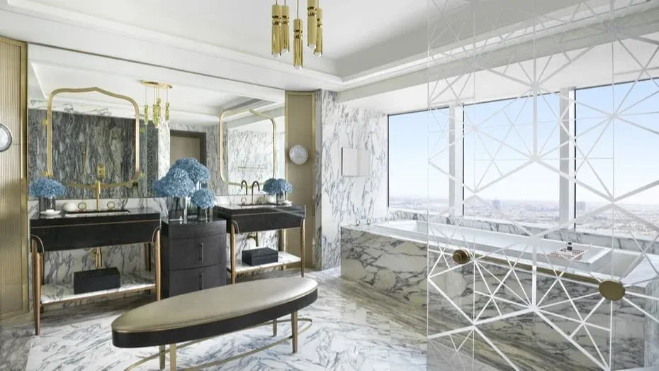 El lugar elegido para el portugués y su pareja es la suite Kingdom, que es la suite de dos pisos más nueva del hotel y se extiende por los pisos 48 y 50, con una superficie total de 365 metros cuadrados.