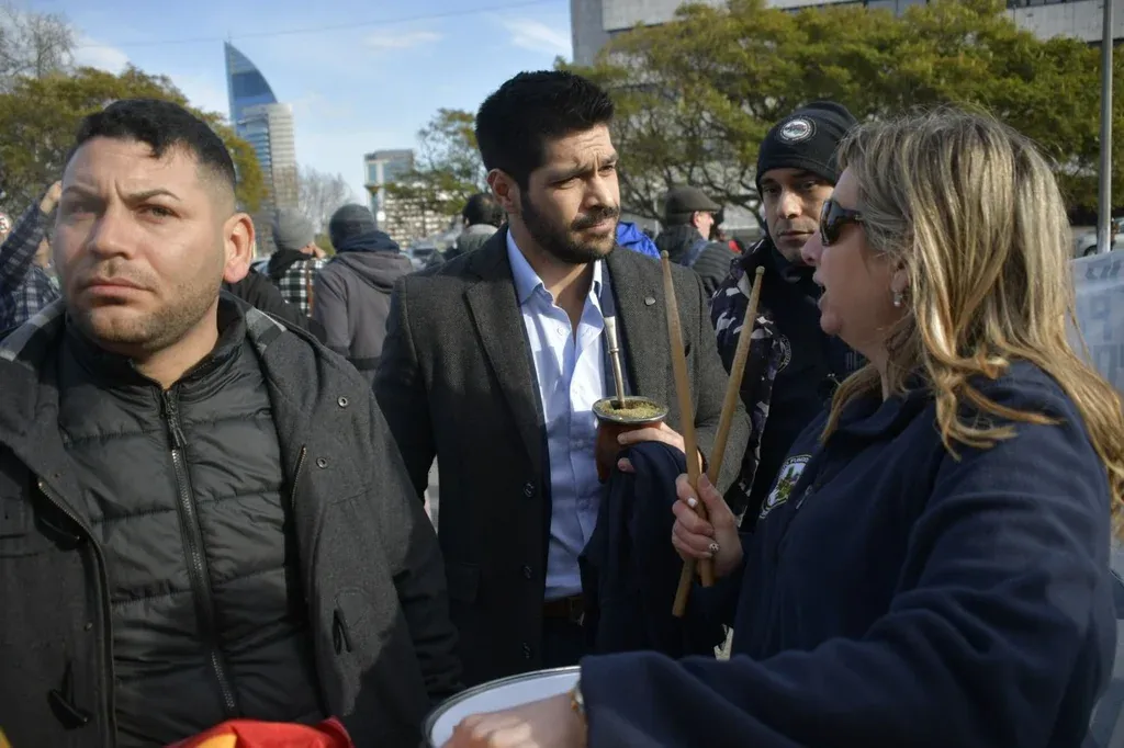 Sobre las 10:30 horas comenzó el discurso. Rodríguez se centró en la pertenencia de Sifpom al PIT-CNT, en la necesidad de negociar. A lo lejos aparecieron, pocos minutos después, cuatro legisladores oficialistas: Gustavo Zubía, Álvaro Perrone, Sebastián Andújar y Gonzalo Mujica. Invitaron al sindicato a reunirse. Aceptan. Rodríguez lo anunció y la fila de gente aplaudió.
