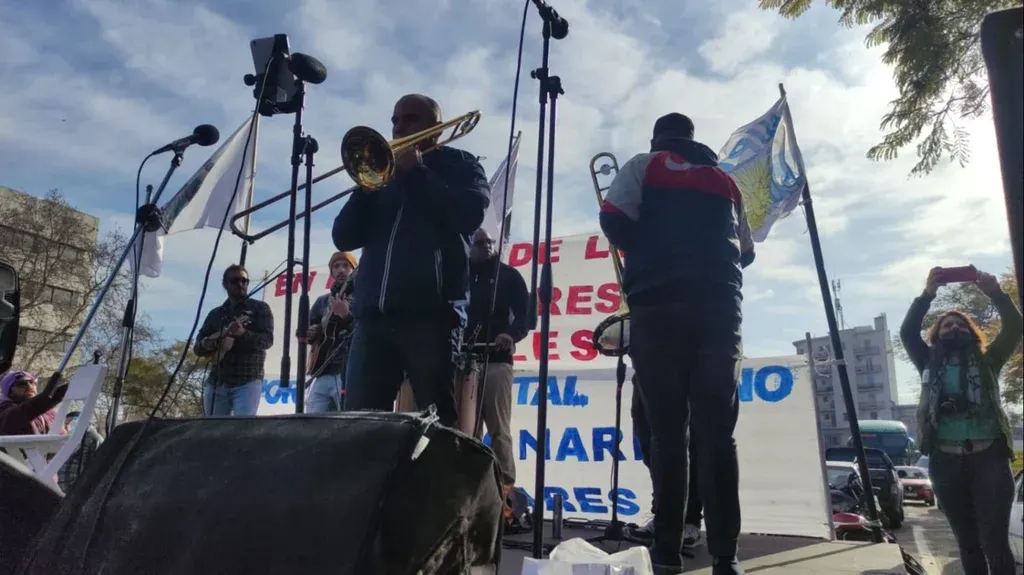 Cuando el representante bajó aparecieron Los Felices, una banda de plena. Comenzaron a tocar covers alejados a varios metros de los manifestantes más cercanos, que no se animaban a aplaudir.