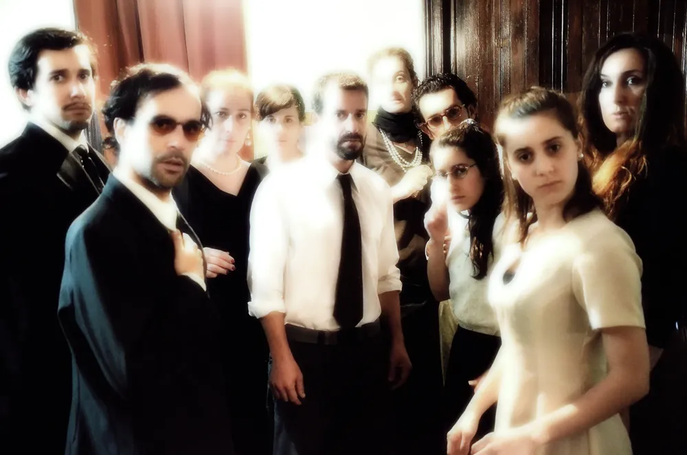 Algunos de los concurrentes (denominados bajo el nombre de “socios”) se acomodan en las sillas disponibles, otros conversan de pie en el living, de empapelado violeta rococó y repleto de objetos (vajilla, un piano, pequeños animales disecados, fotos, espejos, bebés de juguete de aspecto siniestro, lámparas de araña que cuelgan de los techos). De pie entre los espectadores se encuentra un hombre de traje, barba y aspecto agobiado, que va y viene y se apoya contra las paredes. De repente comienza hablar y, a medida que lo hace, aparece de uno de los extremos de la sala un grupo de personas de indumentaria antigua, que se mezcla con el público.