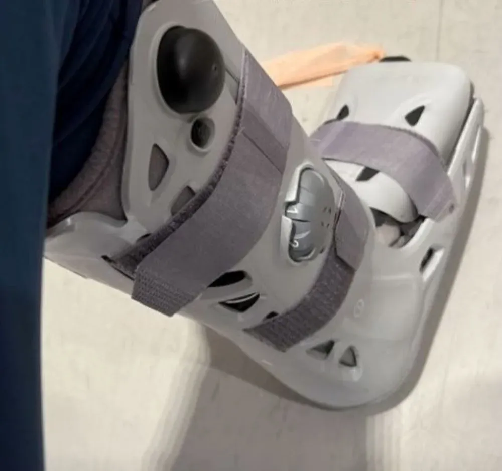 Al futbolista le colocaron aquel día una bota en su pie para inmovilizar la zona.