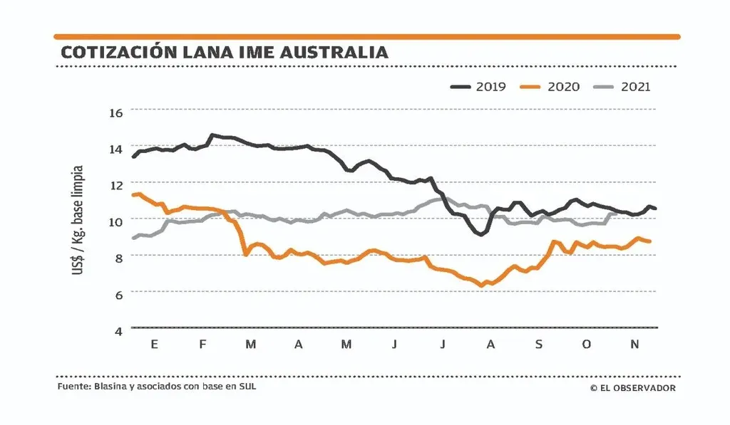 El miércoles 20 el Indicador de Mercados del Este (IME) cerró a US$ 10,25 por kilo base limpia y consolidó la suba de 5,5% que había mostrado el día anterior.