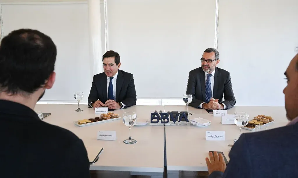 Álvaro Portillo El BBVA apuesta a la innovación y la inteligencia artificial. "Uruguay es un gran ejemplo en América Latina con su apuesta por la generación energética a partir de fuentes renovables. En Uruguay, BBVA cuenta con un banco que está entre las entidades más sólidas del país, que mejora constantemente su oferta de productos y servicios, apoyados en la innovación tecnológica y que, además, ofrece una amplia gama de soluciones sostenibles. Nuestra prioridad para los próximos años es acompañar a los clientes y las empresas uruguayas en su transformación sostenible e internacionalización, con ayuda de la presencia internacional y la fortaleza financiera del Grupo BBVA", comentó.
