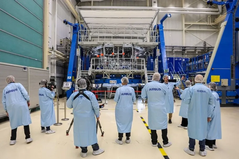 Estos módulos, cilindros de unos cuatro metros de diámetro y altura, compuestos por unas 22.000 piezas suministradas por diez países, se ensamblan en la sede de Airbus en Bremen, en el norte de Alemania.