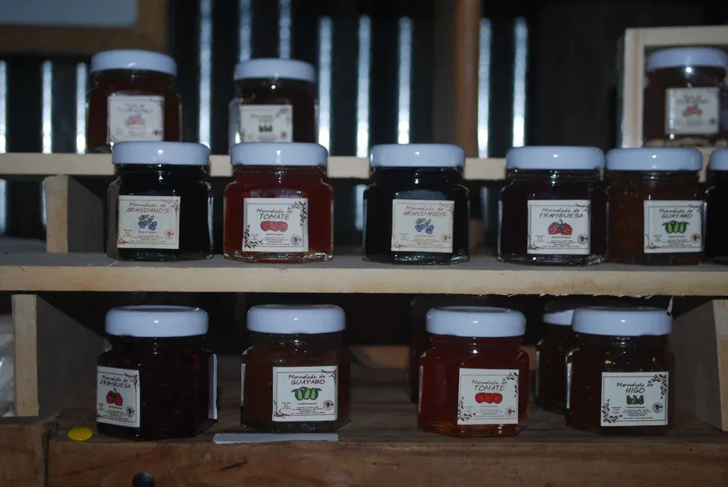 Tiene mermeladas de arándanos, de frutilla, de higo, de frambuesa, de guayabo, pasta de durazno, dulce de boniato o de zapallo en almíbar, morrones en vinagre, morrón con cebolla agridulce, entre otros.