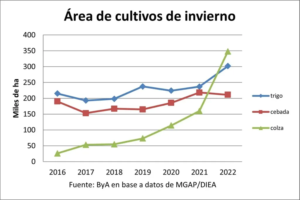 Los datos finales de la zafra de 2022 de cultivos de invierno tuvo resultados excepcionales en varios aspectos, con el destaque principal de la colza, pero es en su conjunto donde se aprecian los aspectos favorables en la producción de tres años teniendo como marco el evento climático La Niña, y las transformaciones que la agricultura uruguaya sigue consolidando.