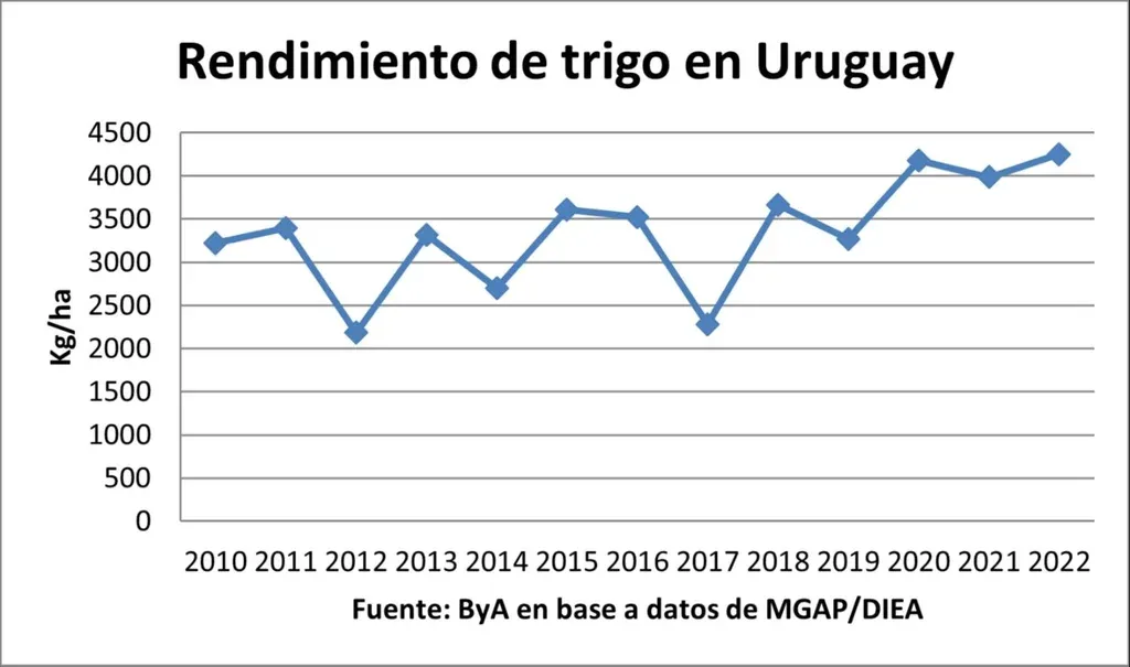 El trigo y la cebada van conquistando gradualmente un rendimiento ubicado en los 4.000 kilos como base del promedio, al menos hasta que llegue un Niño que traiga lluvias excesivas.