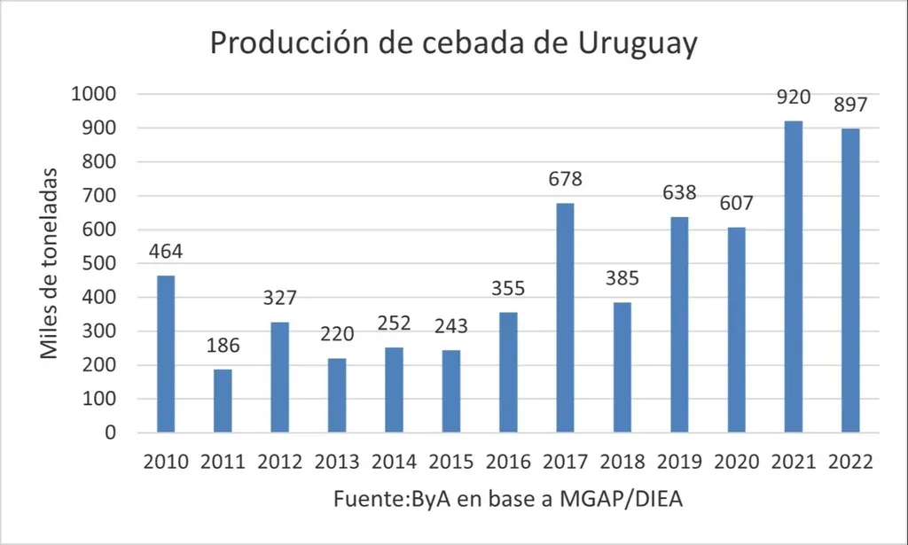 Pero es una estabilidad de área y productividad en altos niveles. Hasta 2019 la cebada nunca había alcanzado los cuatro mil kilos de promedio, ahora supera las cuatro toneladas ya por tercer año consecutivo. Una nueva normalidad.