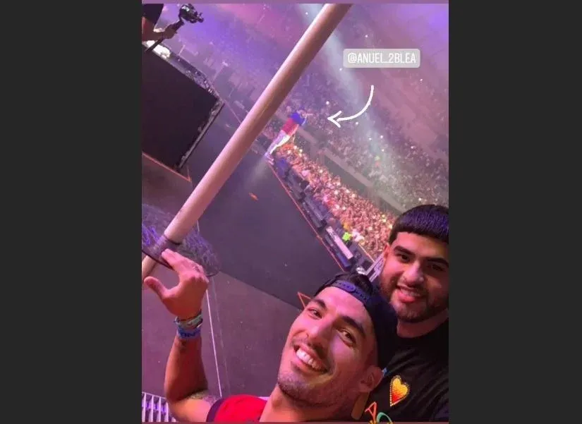 Luis Suárez tuvo un fin de semana musical que culminó este domingo a la noche en el show del reguetonero y cantante de trap Anuel, quien cerró su gira en Barcelona con un show que el salteño disfrutó desde el piso del escenario.