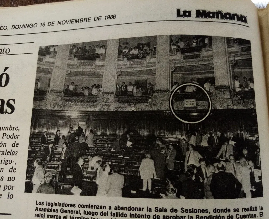 “Una jornada teñida por el color de la incertidumbre, generando una desusada tensión en el ámbito Legislativo fue la que se vivió anteayer en ocasión de producirse la sesión de la Asamblea General”, introducía el diario La Mañana en la jornada del 16 de noviembre. El día anterior un paro de trabajadores había dejado sin edición al matutino.