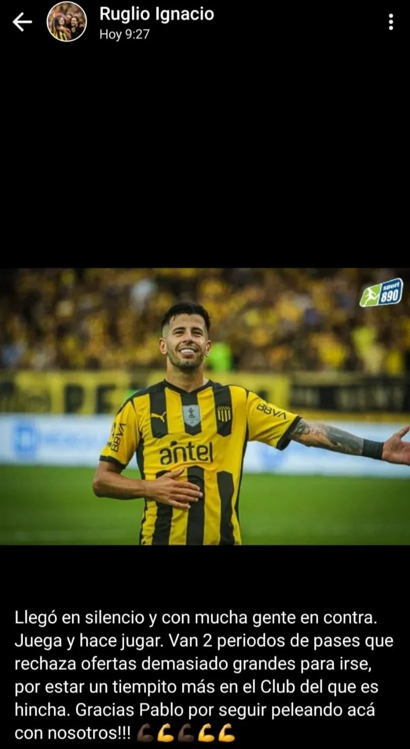 Hace poco más de un mes, Ruglio había apoyado a Ceppelini por querer quedarse en el club pese a tener ofertas de otras instituciones más poderosas económicamente