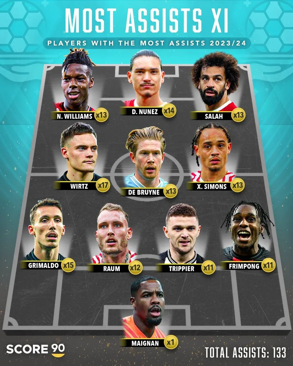 Aquí se puede ver el equipo completo de los mejores asistidores de las cinco principales ligas de Europa: