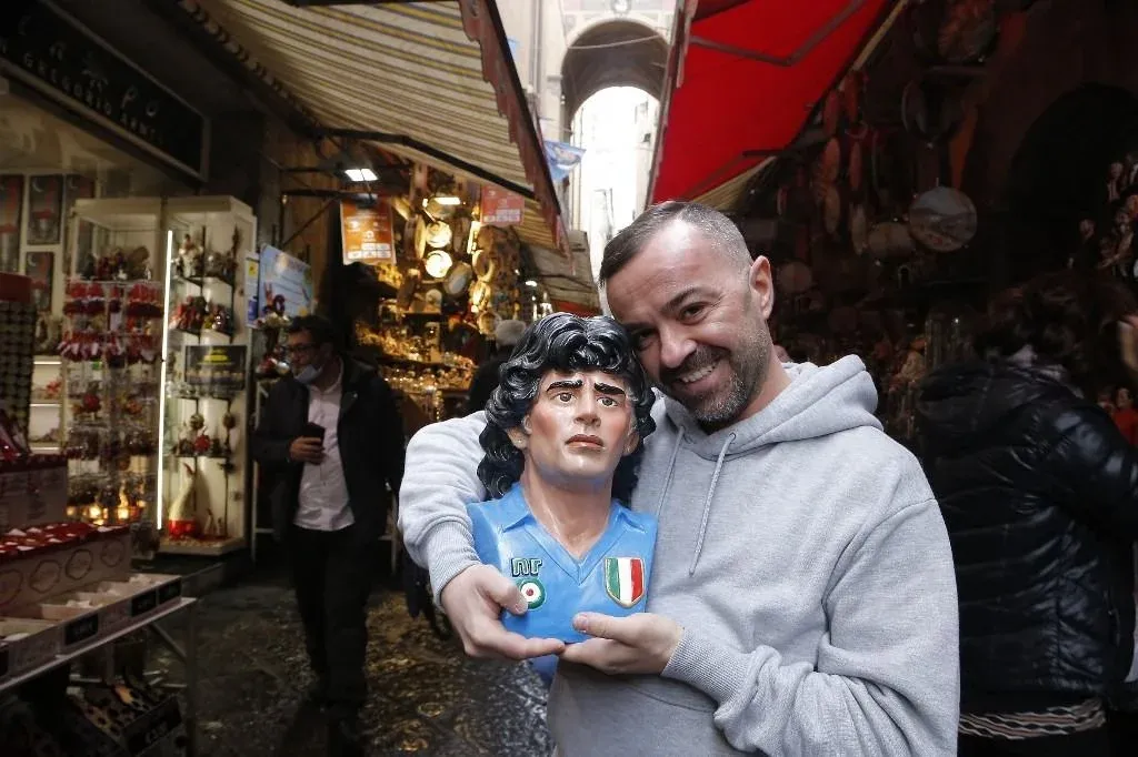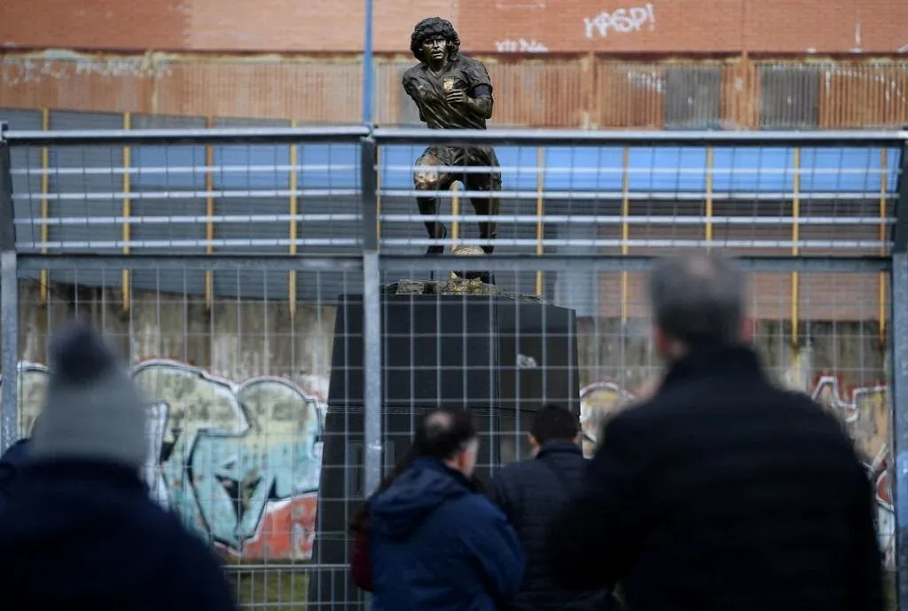 Maradona, ídolo de todos los napolitanos, también ha inspirado al escultor Domenico Sepe, cuya estatua se instaló el jueves delante del Estadio San Paolo, rebautizado en diciembre pasado como Diego Maradona.