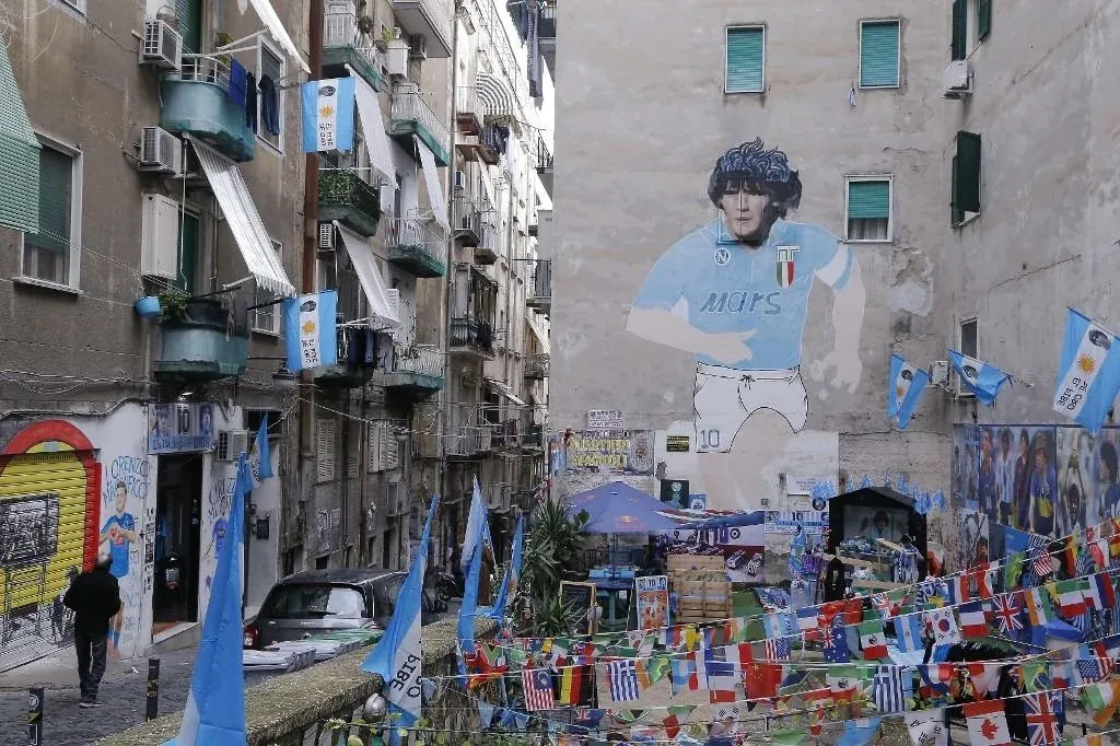 Para aquellos que visitan Nápoles estos días de recuerdo de Maradona, el célebre fresco de los 'Cuarteles Españoles', en pleno centro histórico de la ciudad, pintado en 1990, constituye generalmente la primera etapa, aunque sin perder tiempo de detenerse de camino a otros dibujos pintados en los muros y los carteles de película 'La Mano de Dios', el homenaje de Paolo Sorrentino al Nápoli de los años 1980, estrenada este miércoles en Italia.