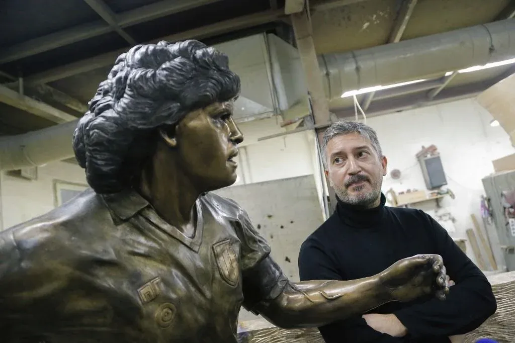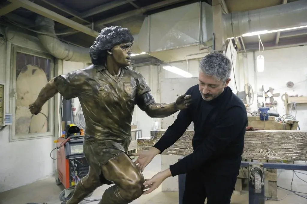 "La obra nació de una exigencia personal. Tras el anuncio de su muerte, algo comenzó a faltarme en mi vida diaria. Y como napolitano, pero también como 'tifoso' del Nápoli y escultor, decidí que debía rendirle homenaje con una obra que le ofrezca la eternidad", describe a la AFP, mirando la escultura apenas terminada (acaba de fijar el balón), en una fundición ubicada en el barrio Pianura.