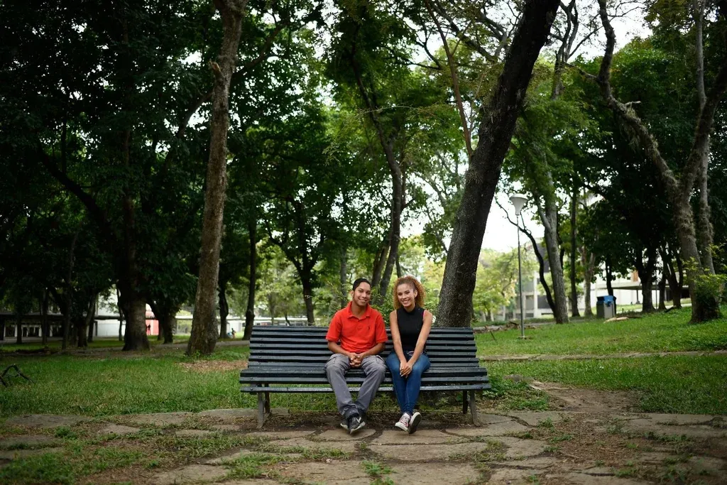 John Álvarez, de 20 años, y Amanda Aquino, de 19, estudian derecho en la Universidad Central de Venezuela, donde es común ver parejas besándose y acariciándose en pasillos y jardines.