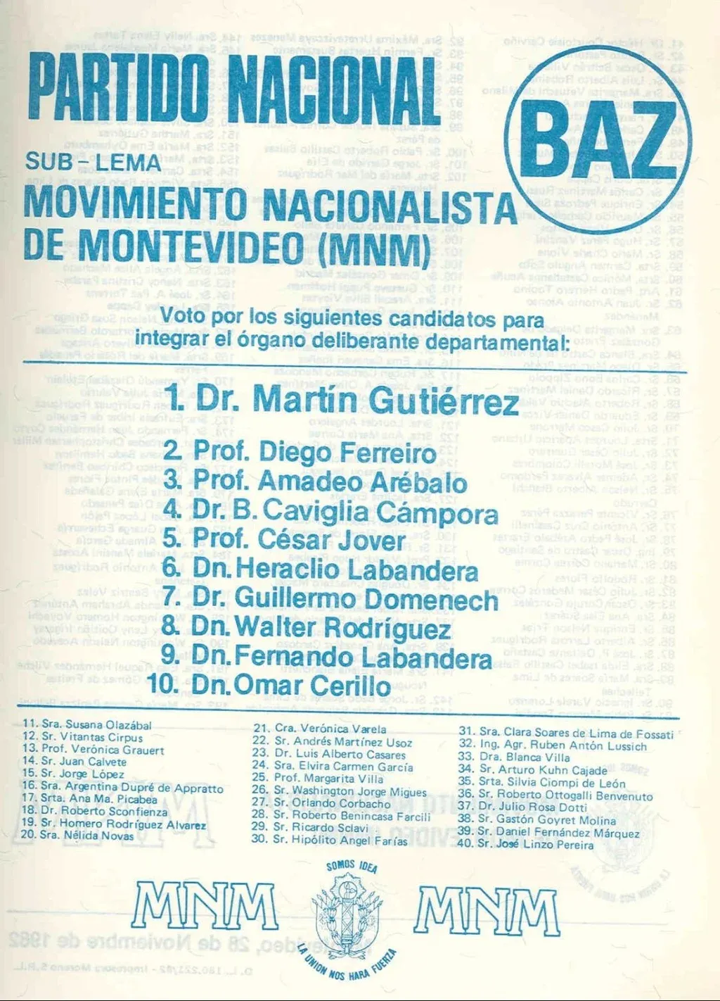 Martín Gutiérrez reapareció en 1982 encabezando una lista en las elecciones internas del Partido Nacional. Fue el primer candidato de la lista BAZ, del Movimiento Nacionalista de Montevideo. Claramente se ubicaba en el sector prodictadura del partido.