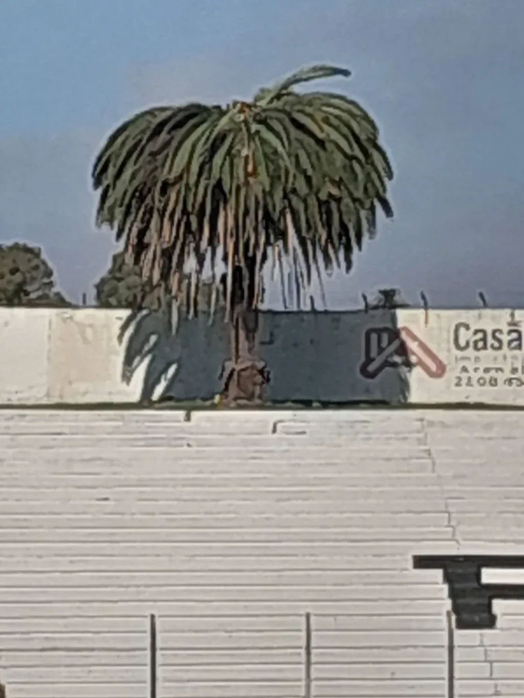 El estadio de Danubio se inauguró en 1957. Poco después, un grupo de chiquilines encontraron en la calle una palmera y la plantaron en un pozo que estaba en la tribuna visitante con escasas esperanzas de que prendiera. Pero prendió, creció y con el tiempo se convirtió en una postal de esas que quedan prendidas en las retinas para siempre para todos los que pisaron el escenario franjeado. En el año 2000, se construyó la tribuna visitante, que antes era una especia de talud con pasto y escalones, pero sin gradas. Esa edificación respetó a la palmera y la dejó en su lugar histórico.