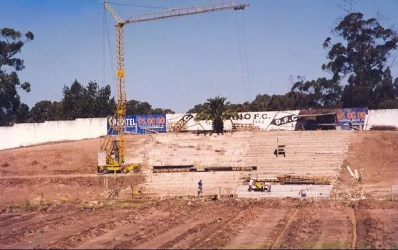 La construcción de la tribuna visitante, la palmera quedó