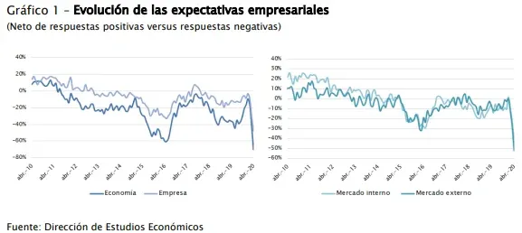 La fuerte baja en abril -donde la actividad económica local sufrió un fuerte parate- se explica principalmente por la crisis a nivel mundial que ocasionó la pandemia del covid-19, según la CIU.