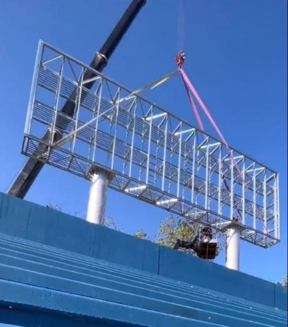 Fue el segundo paso de la instalación de la nueva pantalla, luego de que se instalaran los pilares y la estructura rectangular de la pantalla.