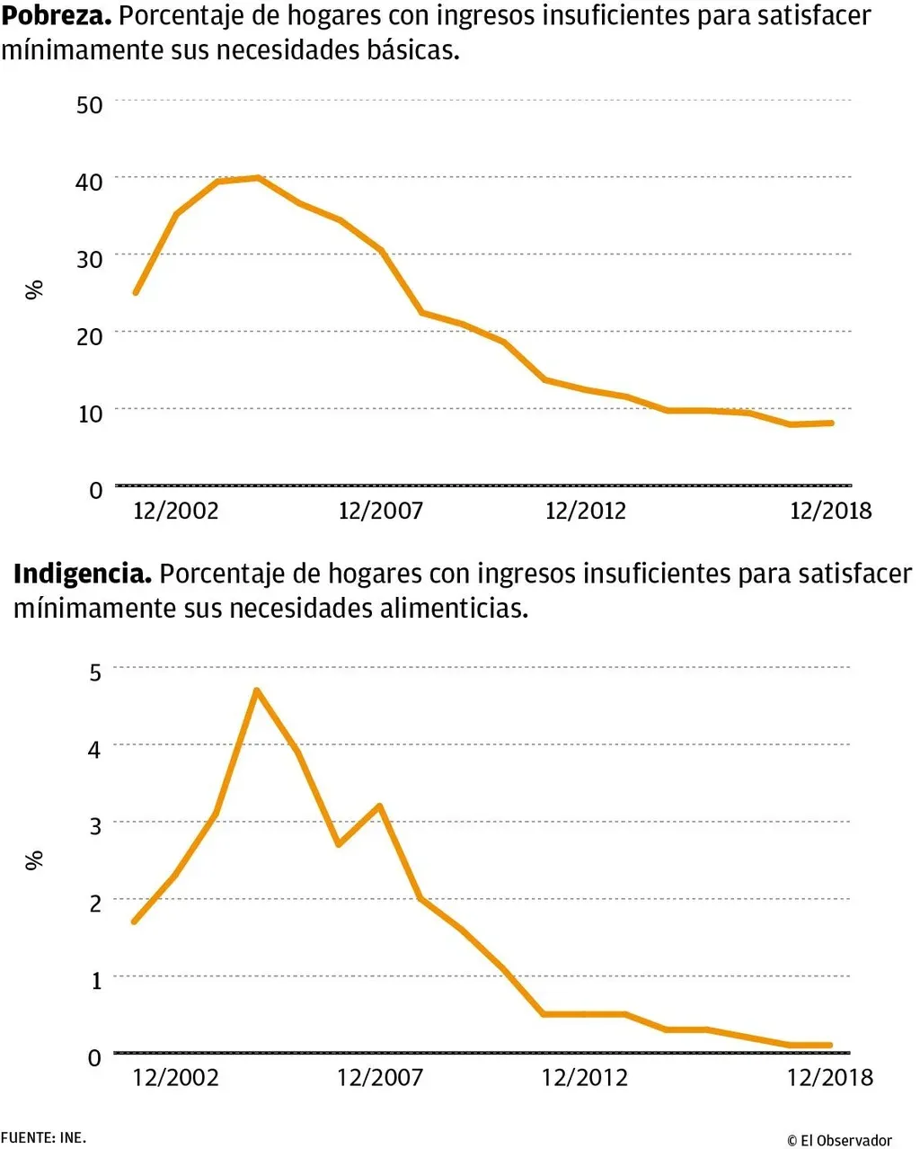 Por su parte, los niveles de indigencia –aquellos uruguayos que no alcanzan con sus ingresos a satisfacer mínimamente sus necesidades alimenticias– se mantuvieron estables en 0,1% de la población.