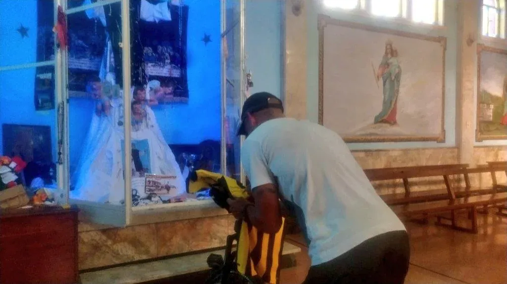 El lateral llegó a la capilla y dejó su camiseta número 3 al santo, que suele ser visitado por varios futbolistas que creen en él.