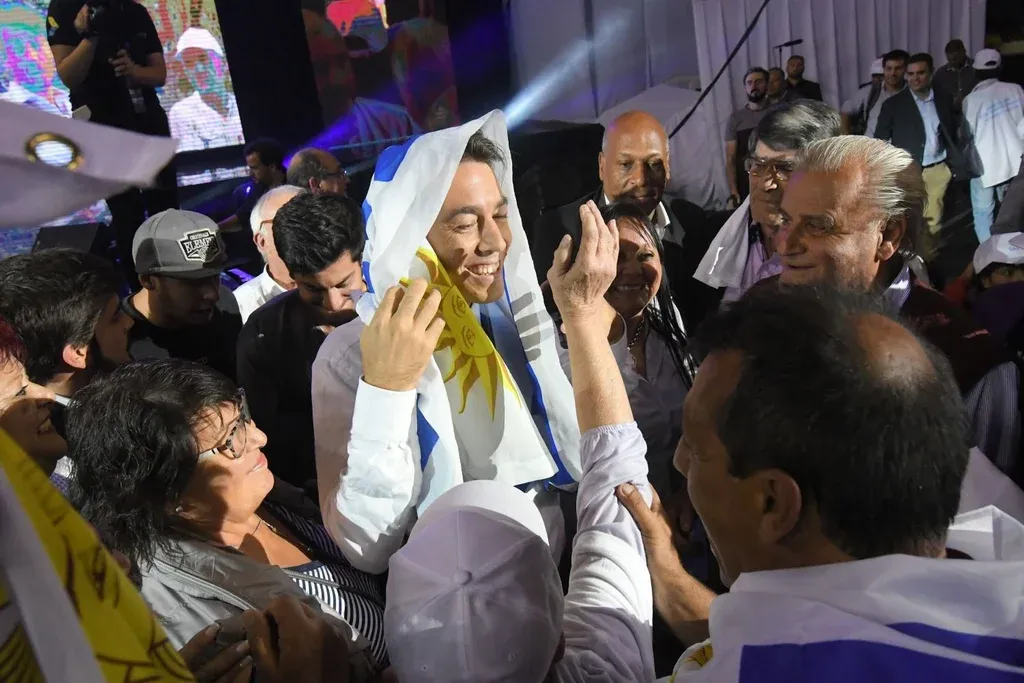 El escenario tenía otra diferencia además de las pantallas que protagonizaban el de Sartori. Cuando Lacalle Pou hizo su acto oficial de lanzamiento de campaña, detrás de él lo acompañaba parte de su equipo. Para esta campaña utiliza la misma estrategia: en sus discursos en escenarios masivos está rodeado de su equipo político y técnico.