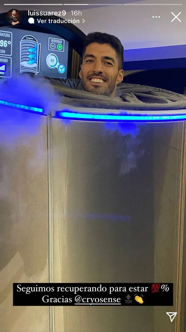 En su cuenta de Instagram el delantero replicó este video pero además, publicó una curiosa foto, adentro de una cabina de crioterapia, en una sesión de recuperación. La crioterapia es la aplicación de frío mediante nitrógeno líquido evaporado que tiene múltiples beneficios sobre el organismo y es muy eficaz para la recuperación de deportistas profesionales.