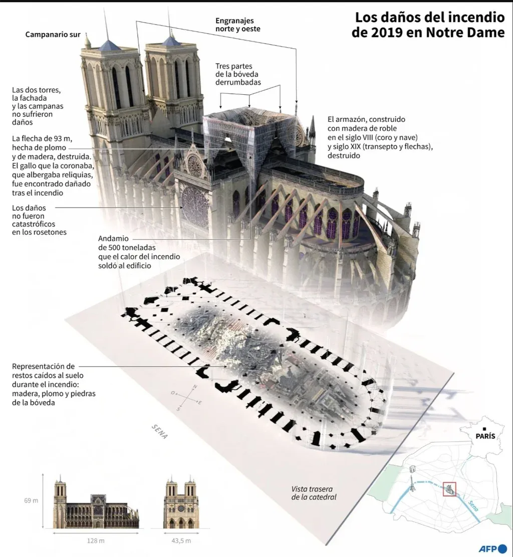 "Las obras avanzan a buen ritmo, lo que nos permite confiar en una reapertura a finales de 2024, de acuerdo con el objetivo fijado por el presidente" Emmanuel Macron, confirmó a la AFP el gabinete de la ministra de Cultura, Rima Abdul Malak.