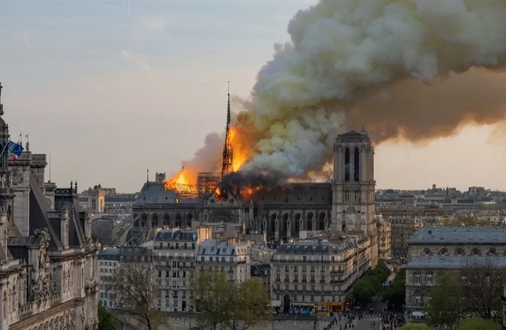 La aguja que coronaba, a 96 metros de altura, el transepto de la catedral fue diseñada en el siglo XIX por el arquitecto Viollet-Le-Duc, y se desplomó durante el incendio del 15 de abril de 2019 que hundió todo el tejado de plomo del templo.