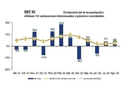 En tanto, la recaudación de Imesi alcanzó los $ 4.483 millones con un crecimiento interanual de 6,5%.