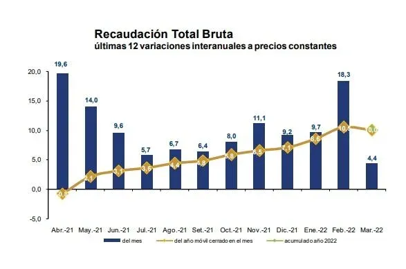 Por su parte, la recaudación neta, es decir, descontada la devolución de impuestos, alcanzó los $ 44.045 millones con un avance interanual real de 2,2%.