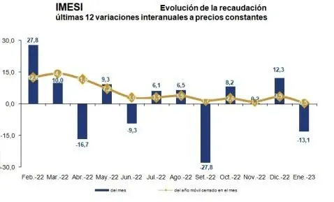 En tanto, la recaudación de Imesi fue de $ 4.725 millones y registró una caída interanual de 13,1%.