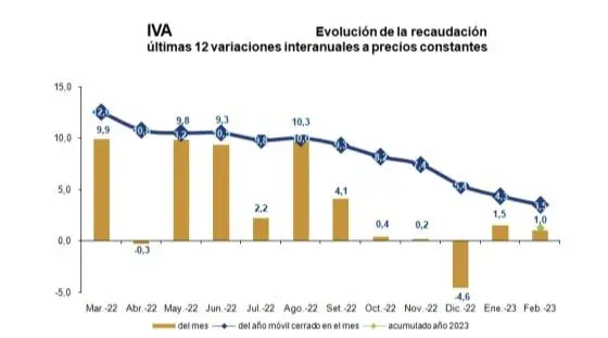Lo recaudado por IVA sumó $ 21.394 millones con una variación real positiva de 1% interanual.