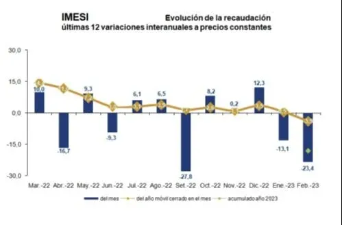 En tanto, la recaudación de Imesi fue de $ 4.096 millones y registró una caída interanual de 23,4%.