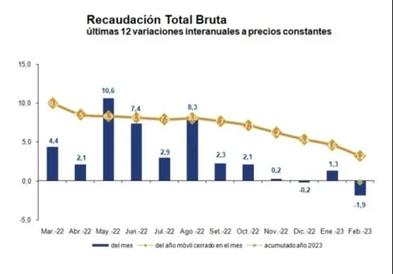 En los primeros dos meses del año la recaudación neta descendió 0,2% en la comparación interanual.