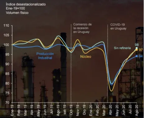 La producción industrial aumentó 3% en agosto (desestacionalizado) con respecto al mes anterior, pero se mantuvo 9,9% por debajo de agosto 2019.